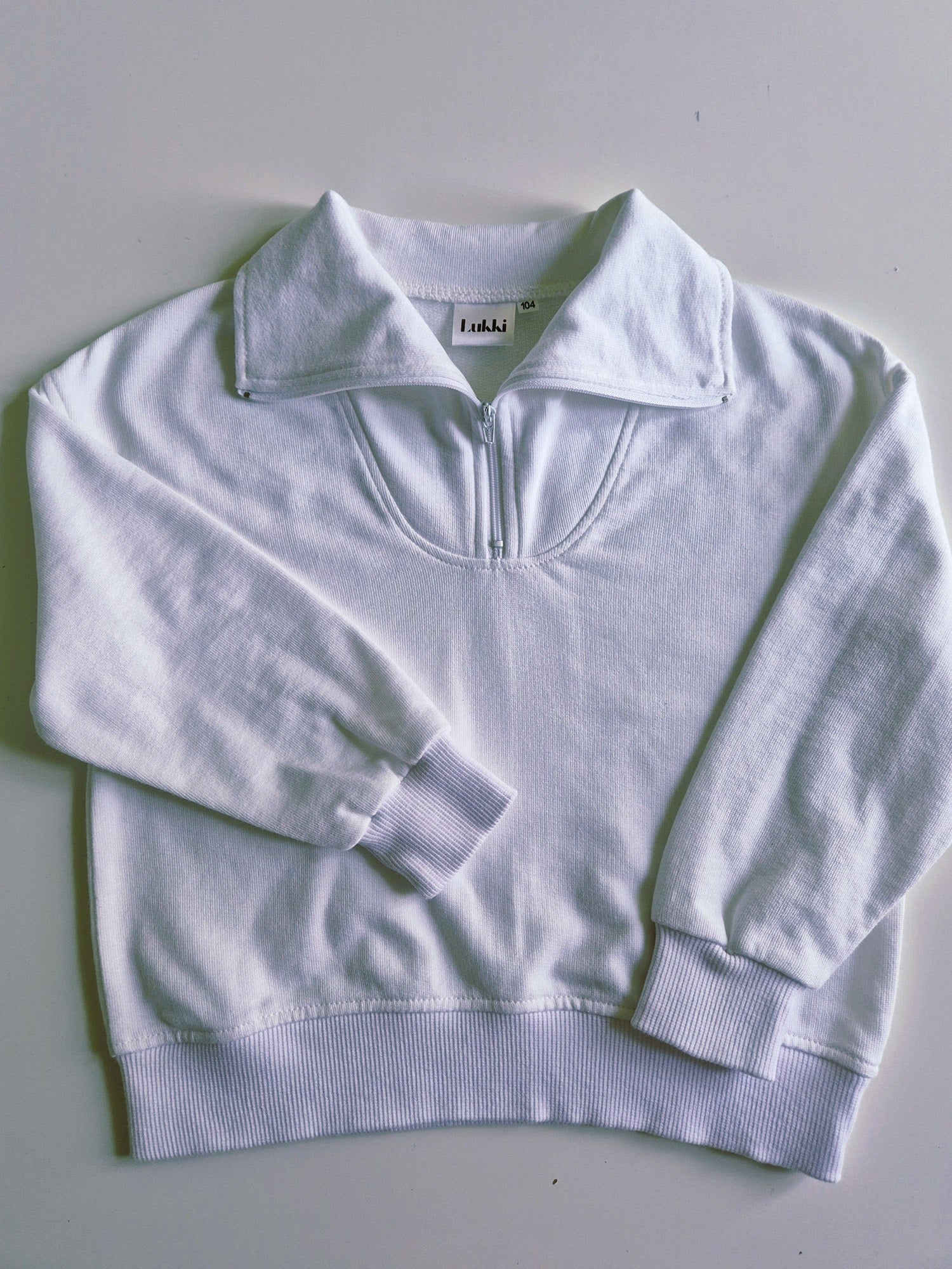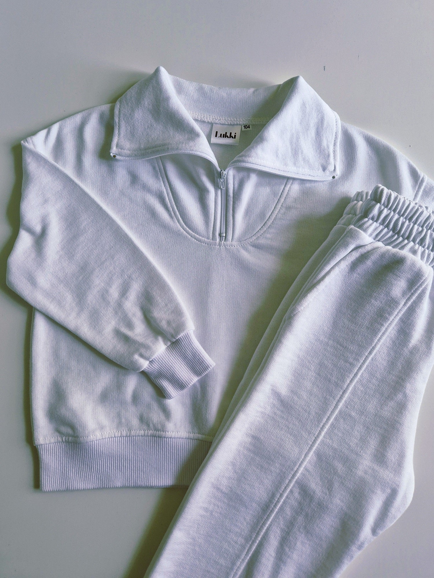 Stilingas ir patogus laisvalaikio komplektukas pasiūtas iš trisiūlio kilpinio trikotažo. Natūrali medvilnė puikiai praleidžia orą ir suteikia šilumos, todėl puikiai tinka vėsesniems orams. Komplektuką sudaro džemperis su elastingais rankogaliais bei aukštu kaklu su užtrauktuku ir kelnės su guma ties liemeniu ir kojų apačioje. Komplektukas patogus, todėl galima laisvai judėti bei mėgautis kasdienine veikla tiek namuose, tiek lauke.
