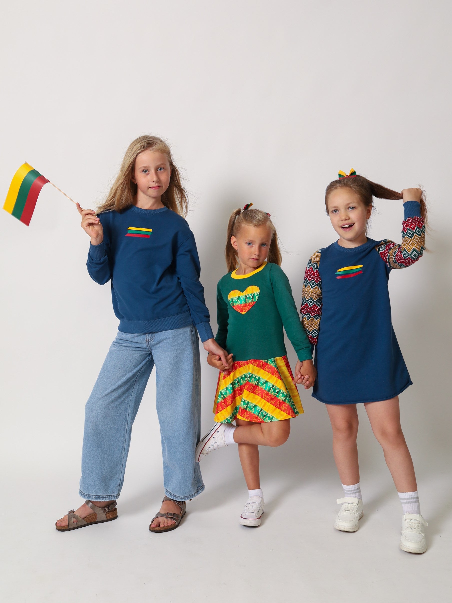 Miela vaikiška trikotažinė suknelė su trispalviu akcentu. Minkšta, šilta ir praktiška. Puikiai tinka pasipuošti valstybinių švenčių progoms, koncertams, darželio ar mokyklos renginiams bei fotosesijoms. Patogi ir stilinga!